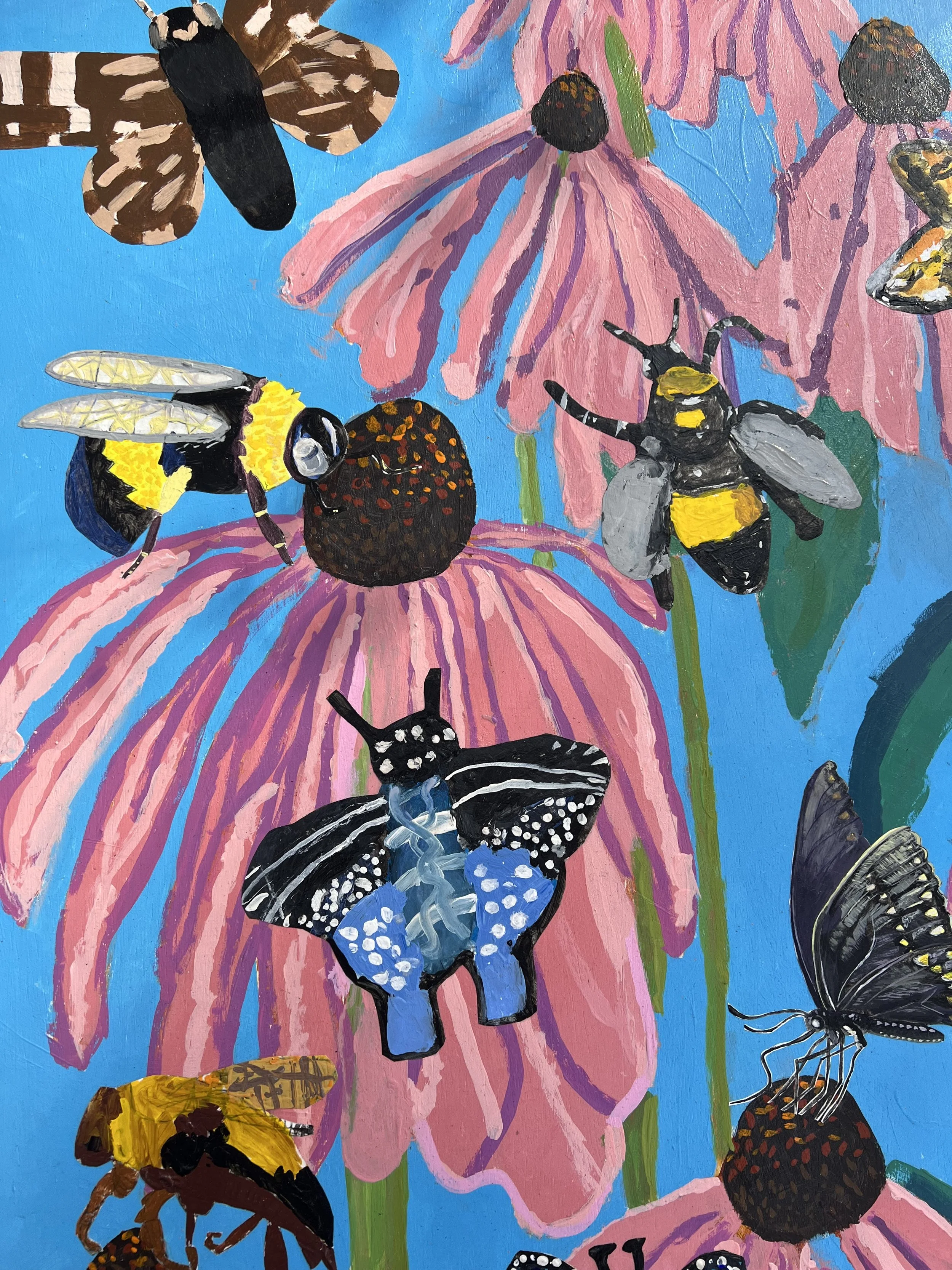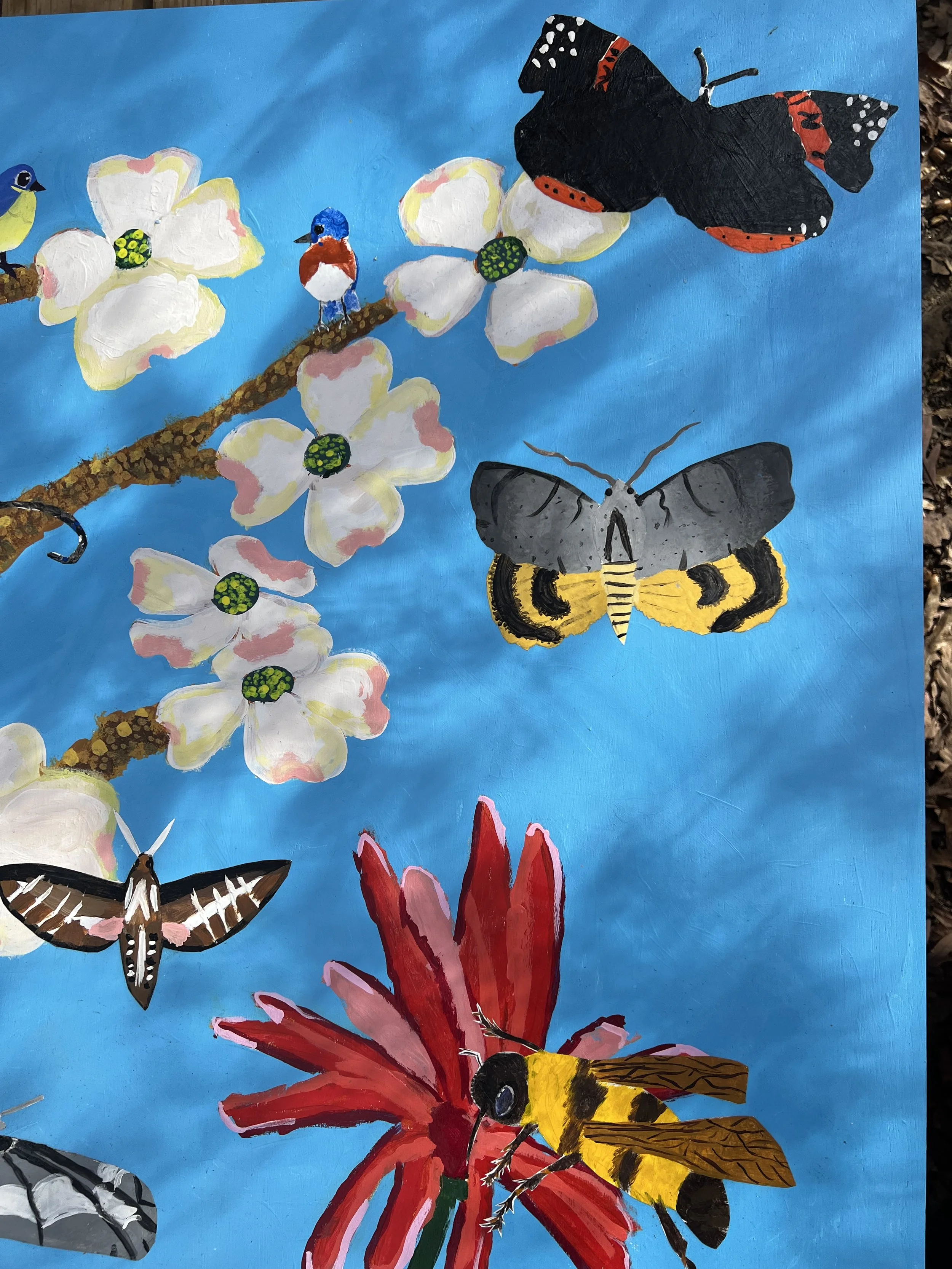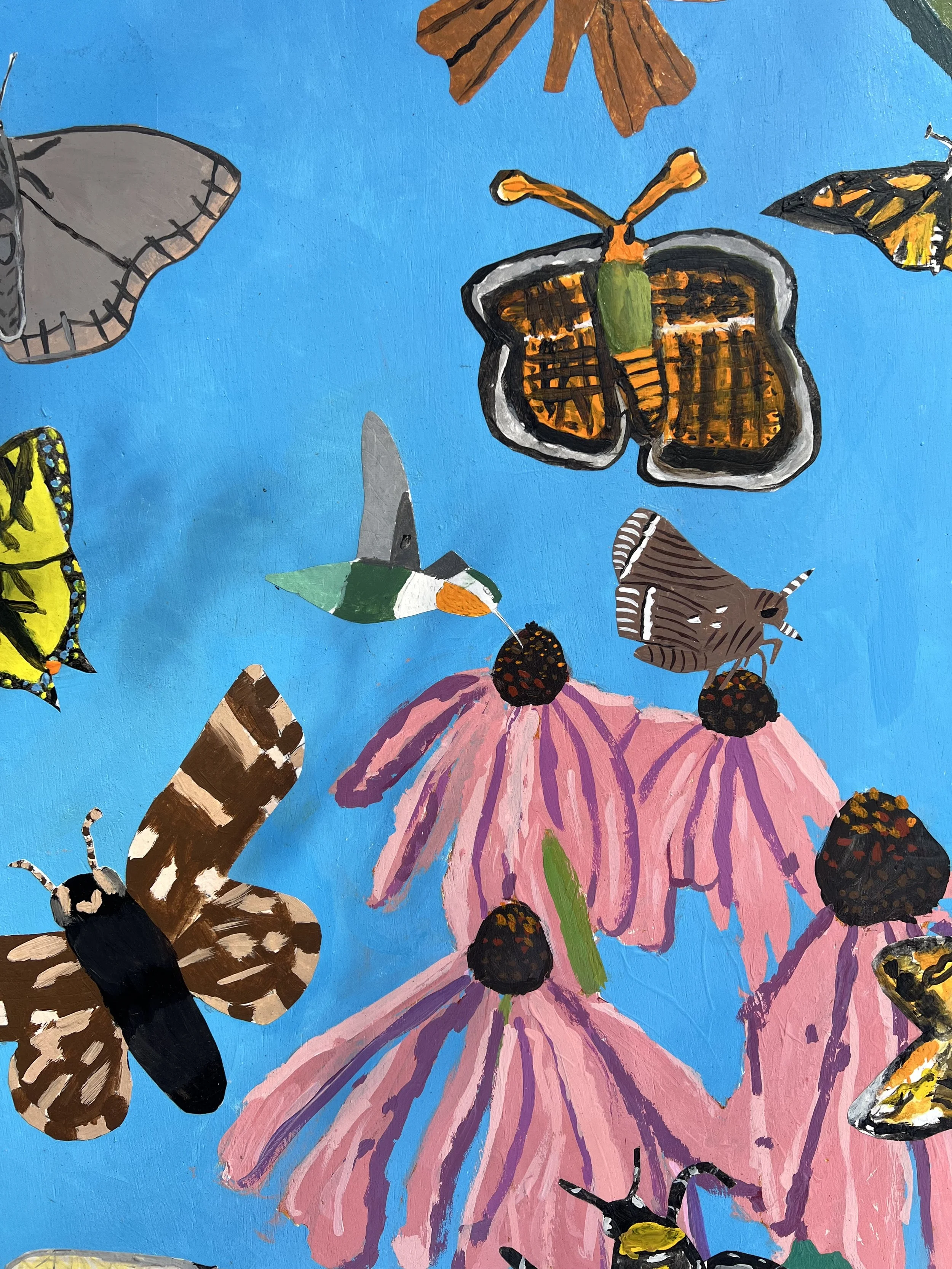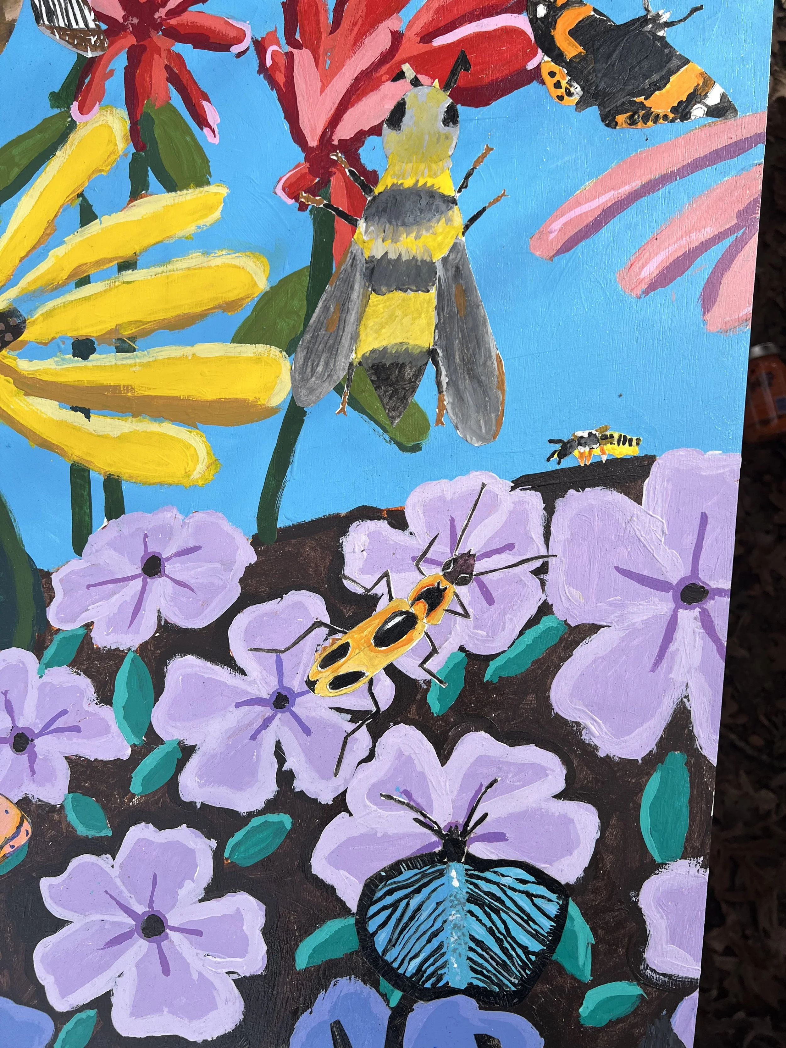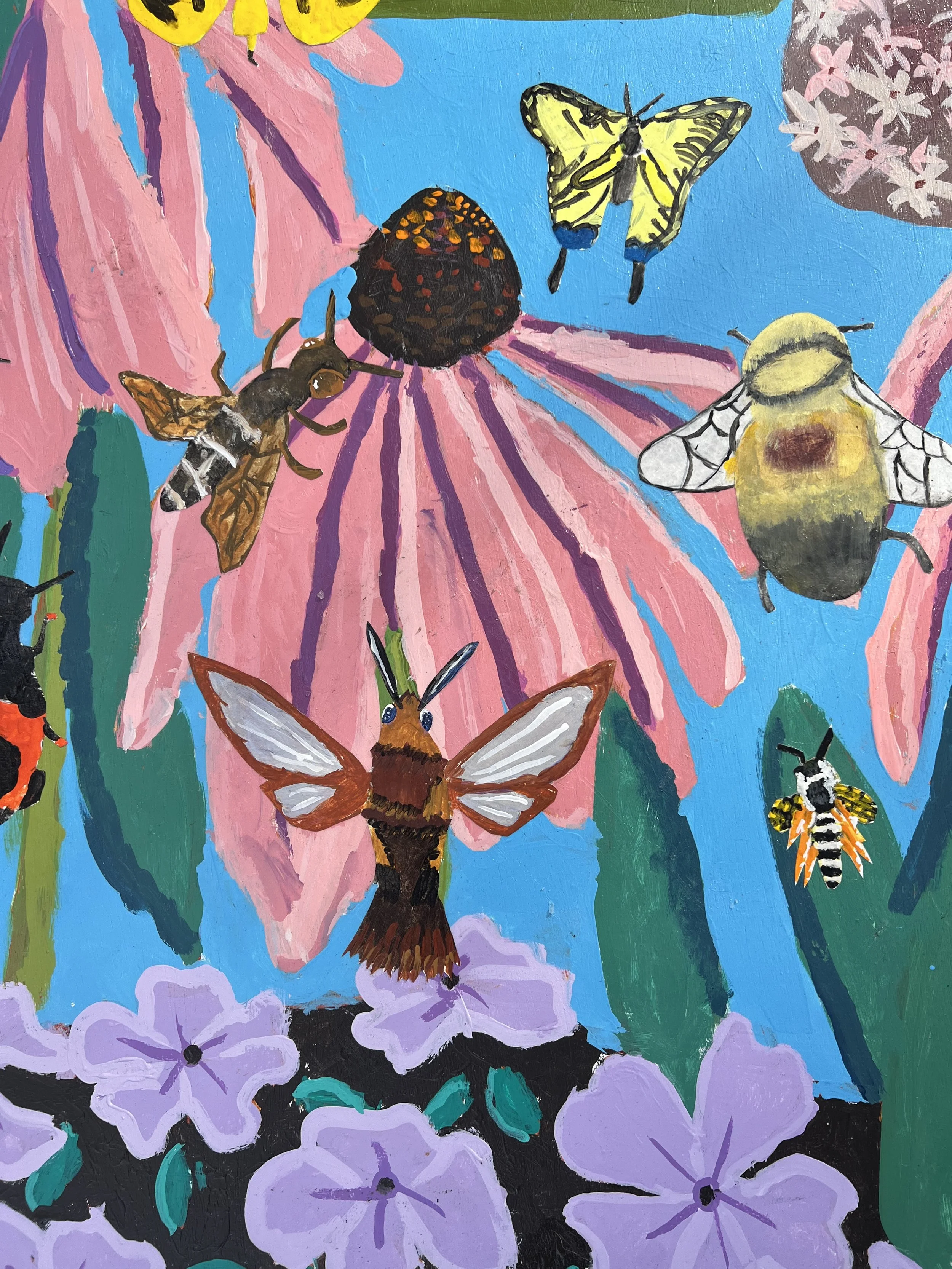 We had so much fun working with the 5th graders in this mural. Each student did a native pollinator as well as helped paint the flowers.