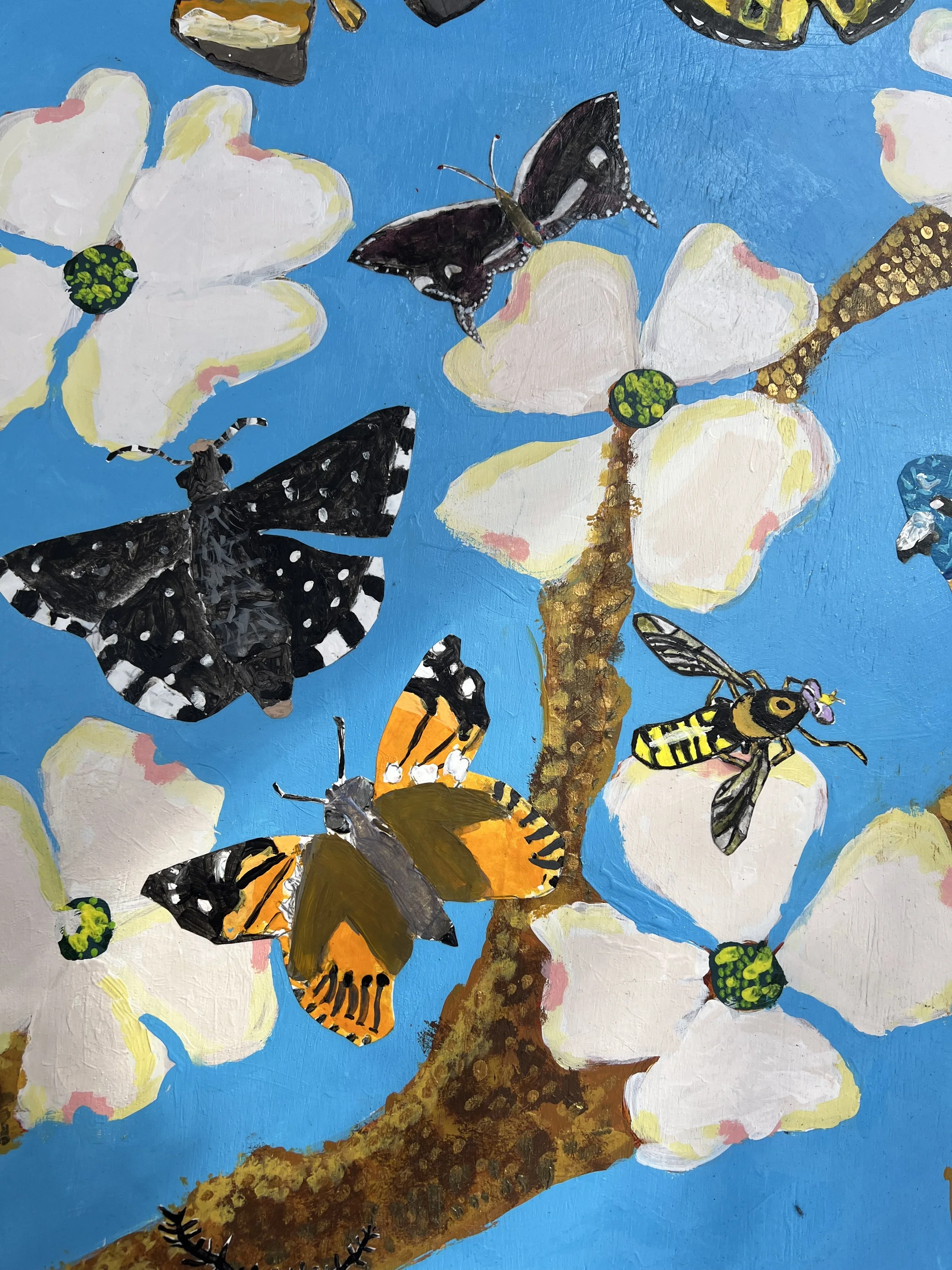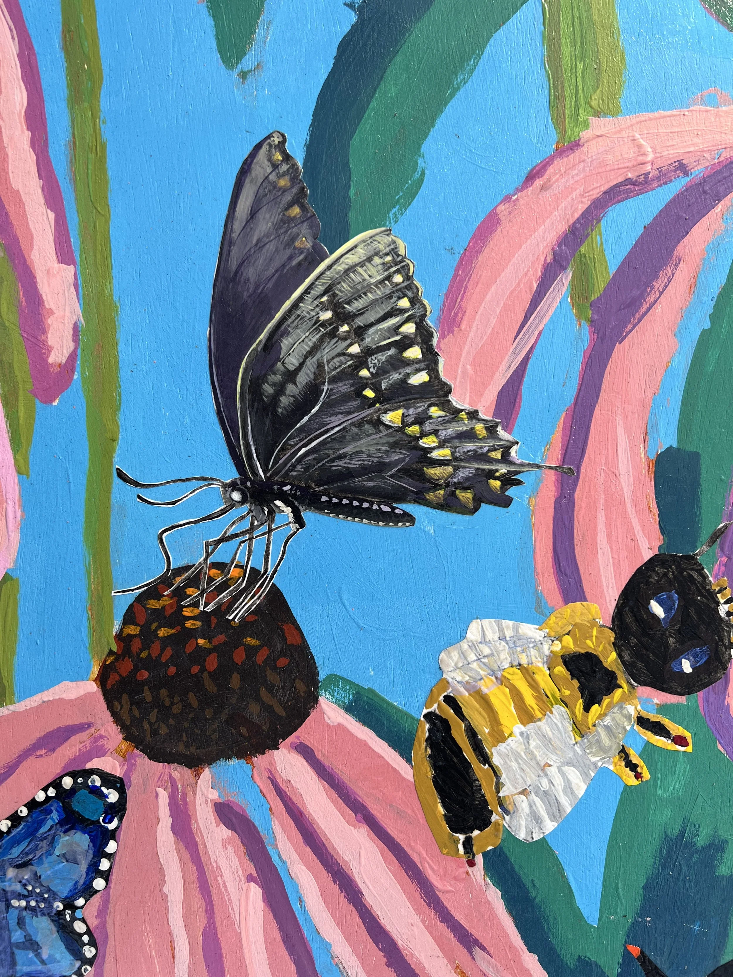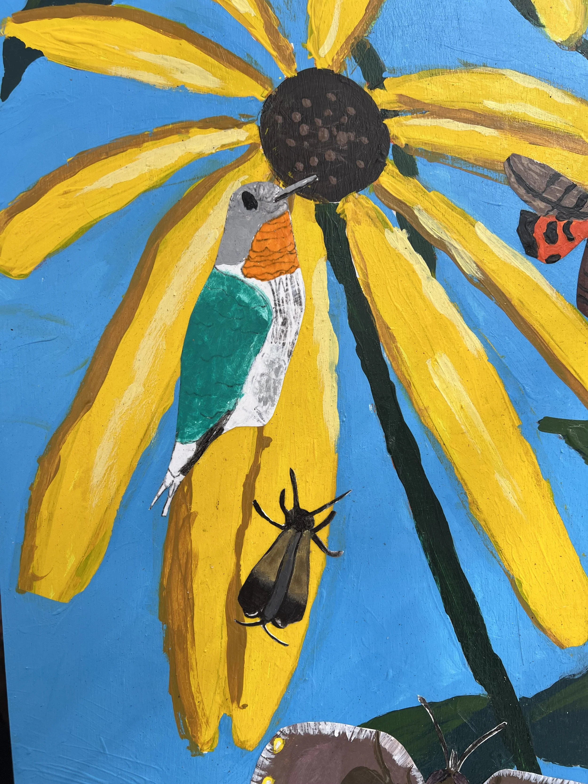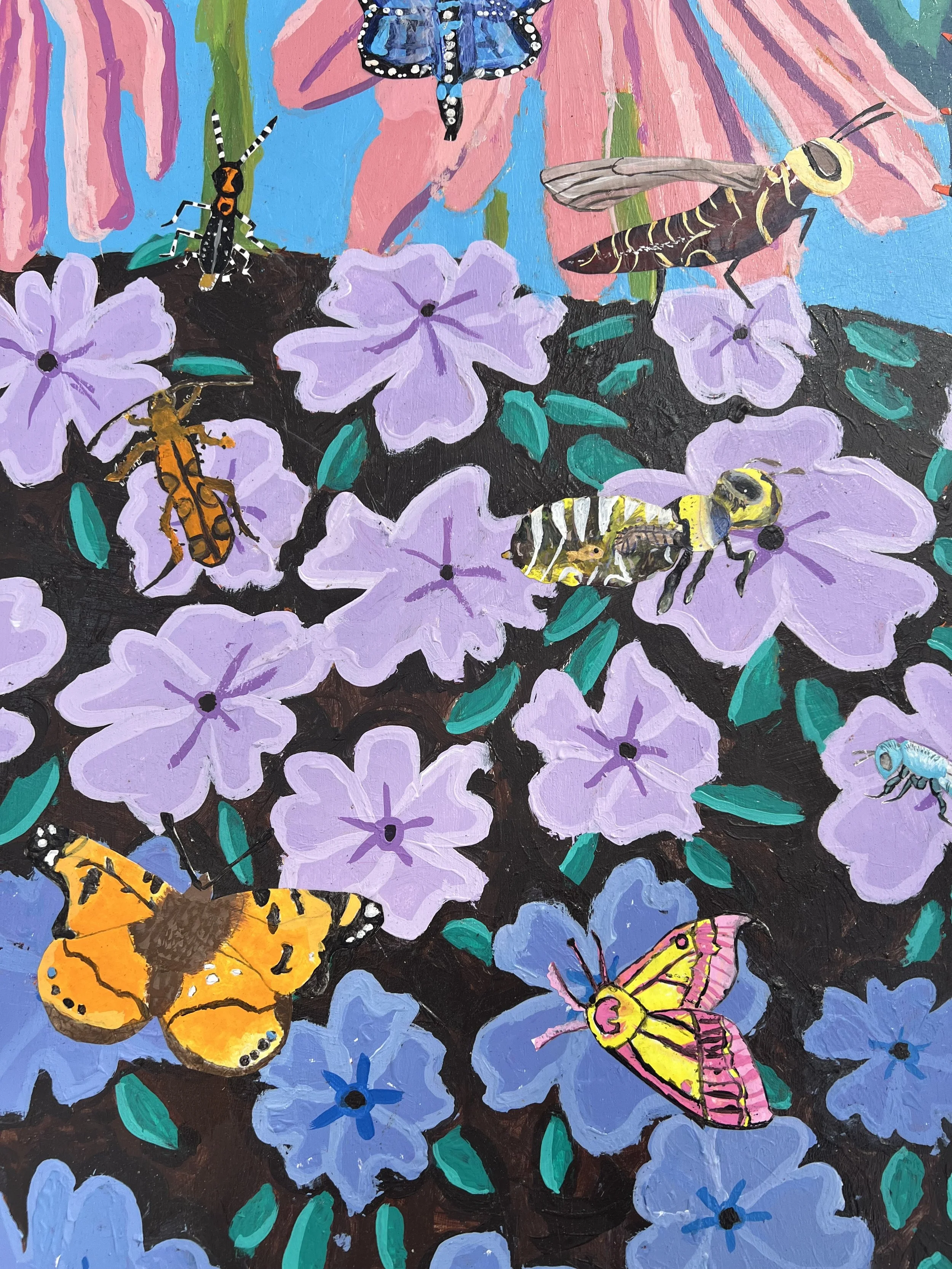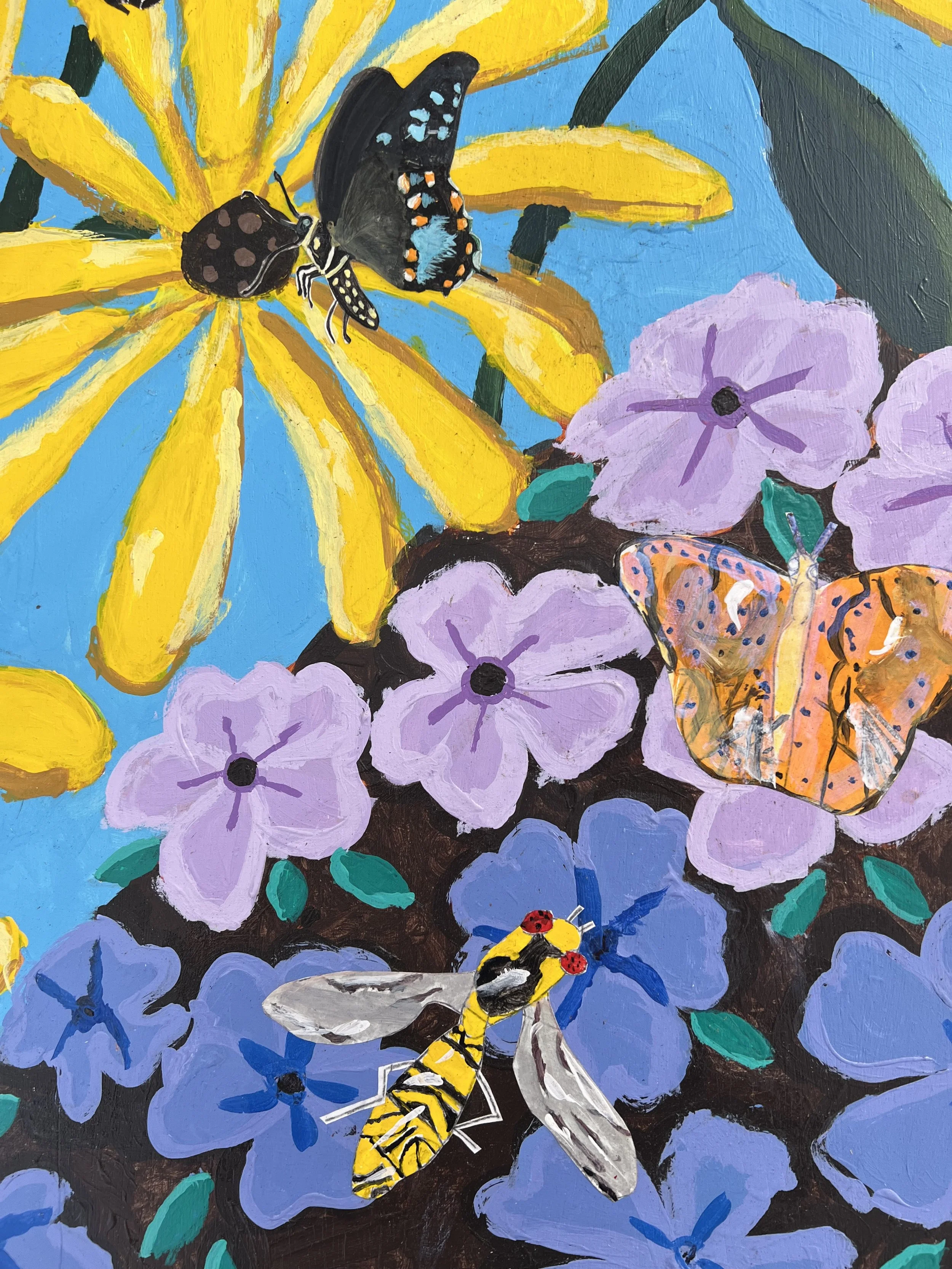 We had so much fun working with the 5th graders in this mural. Each student did a native pollinator as well as helped paint the flowers.