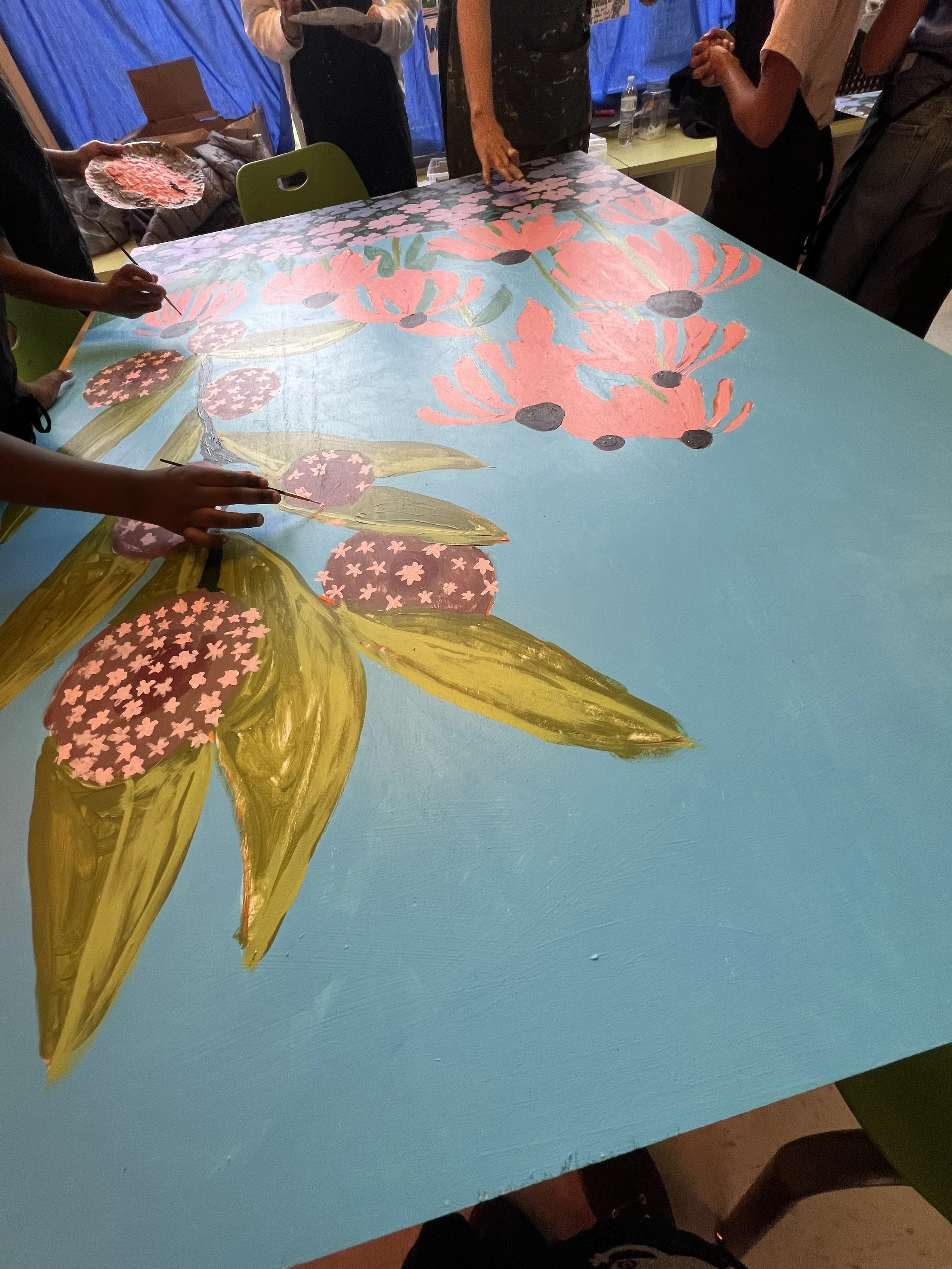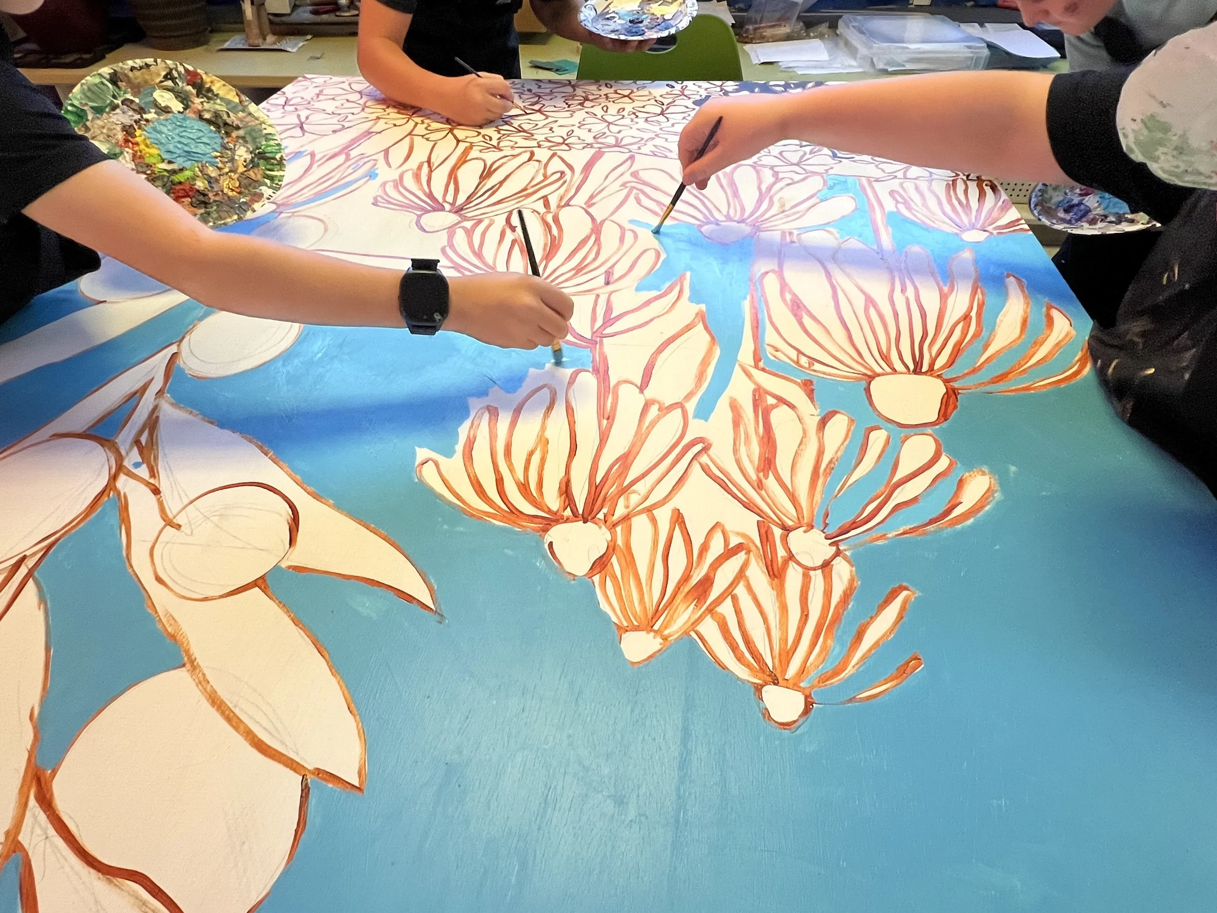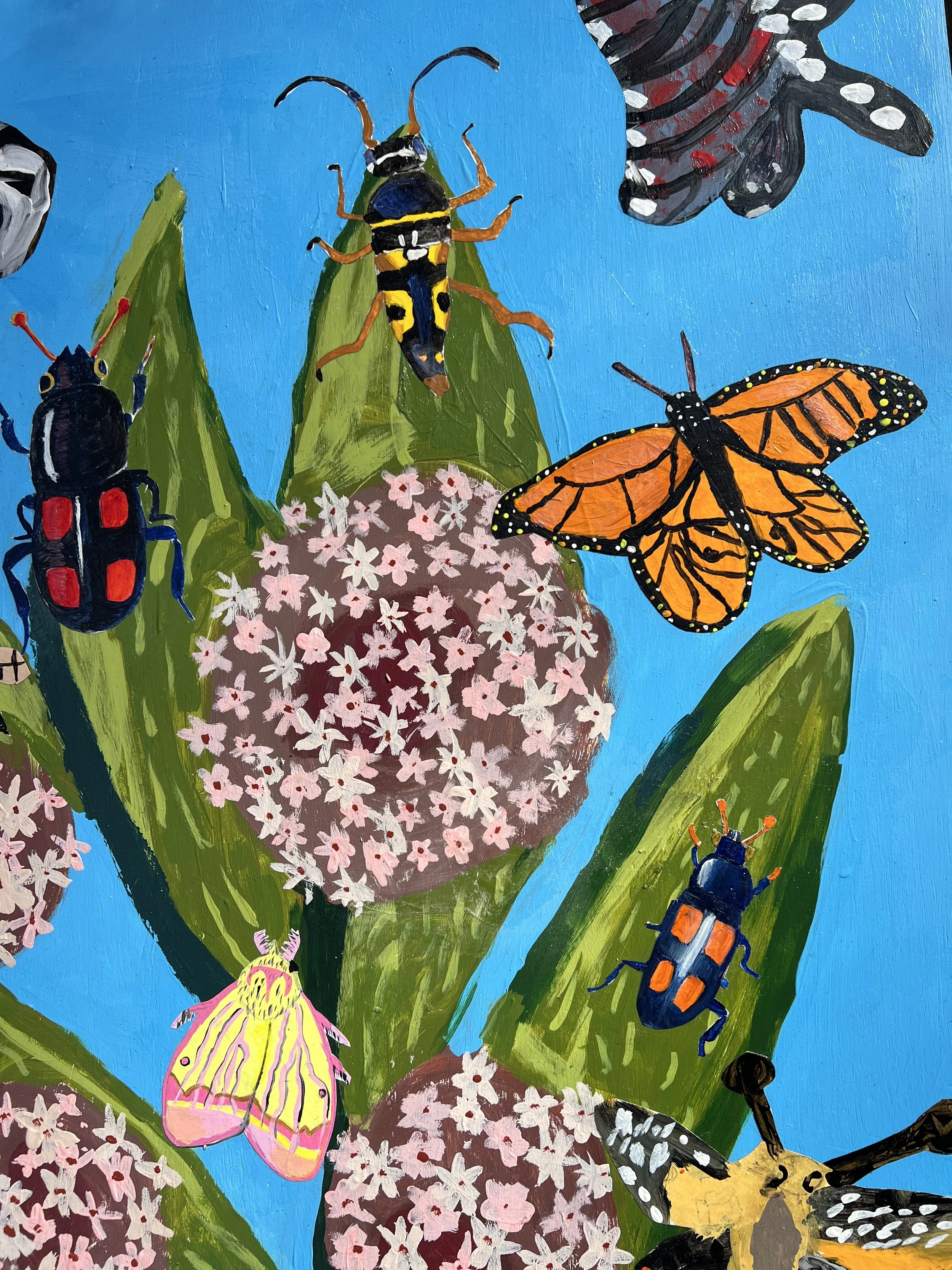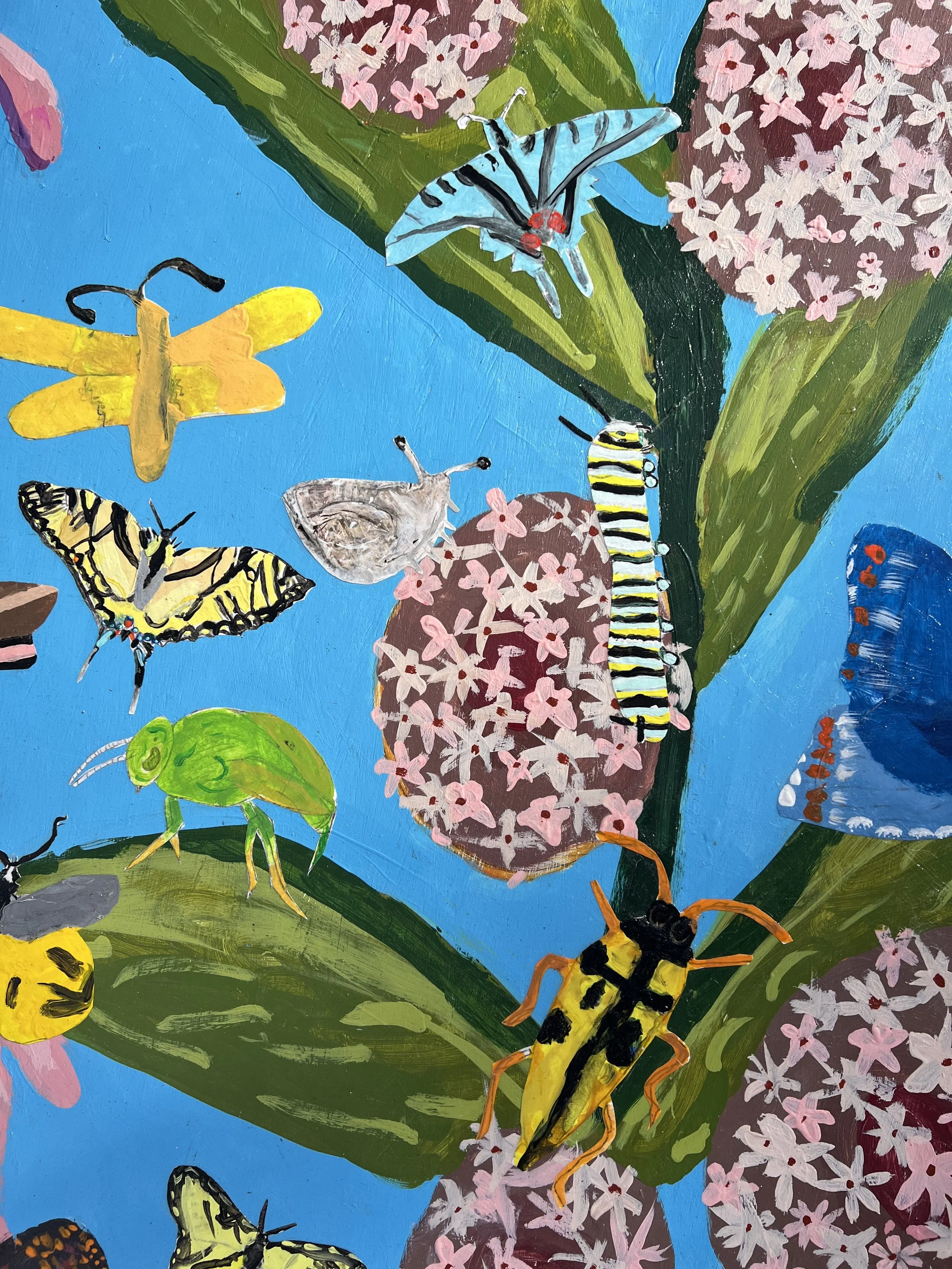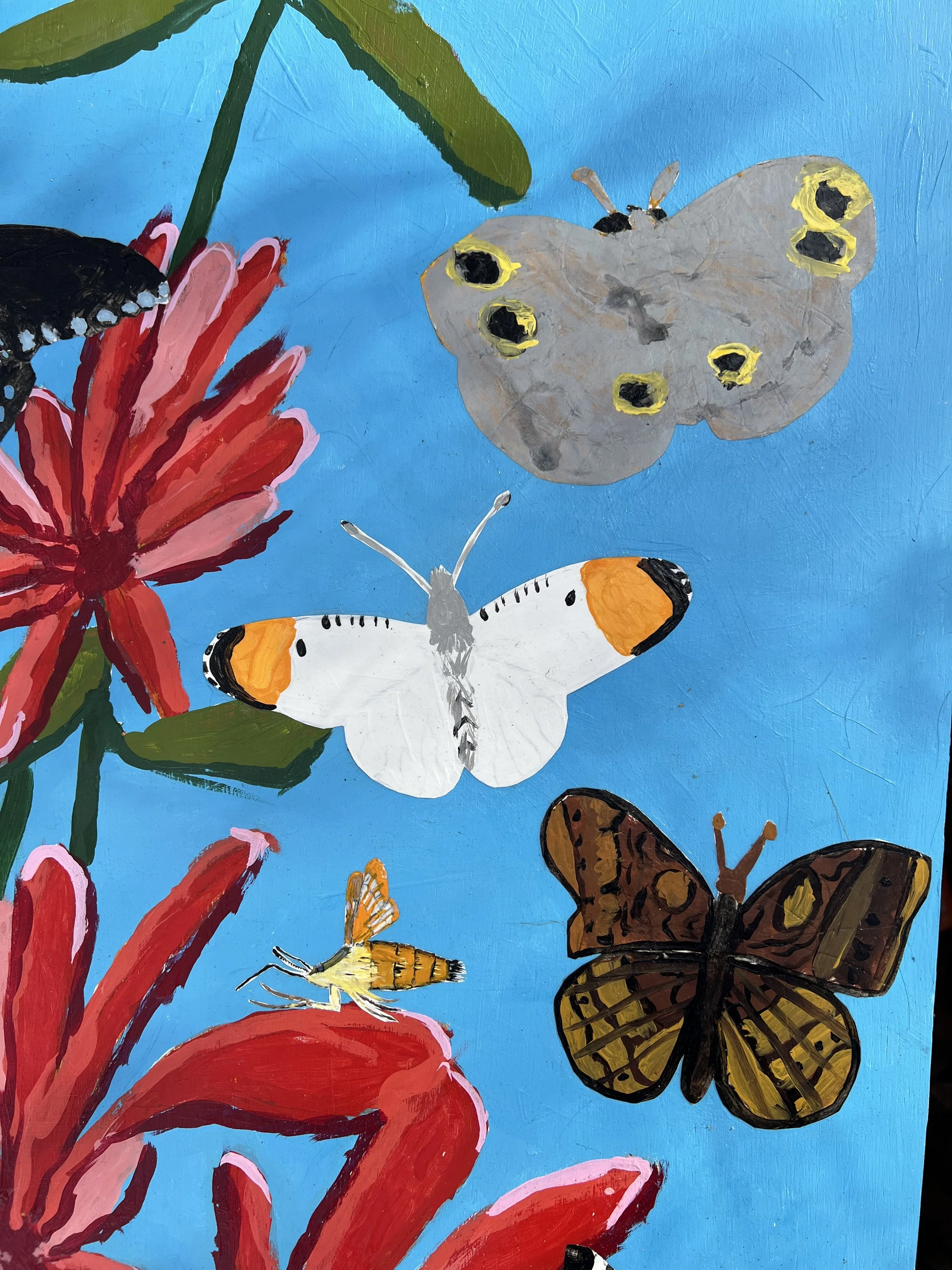 We had so much fun working with the 5th graders in this mural. Each student did a native pollinator as well as helped paint the flowers.