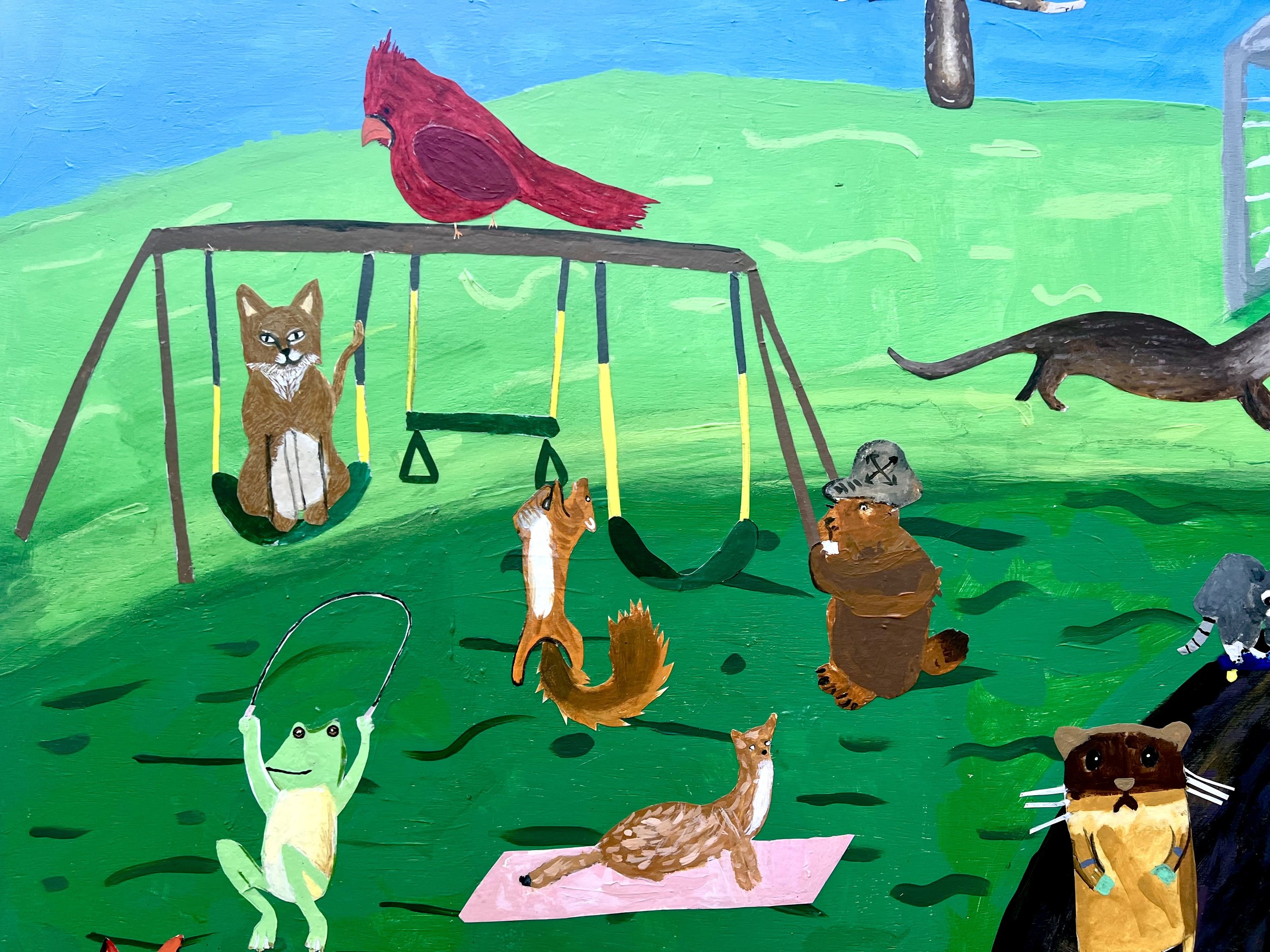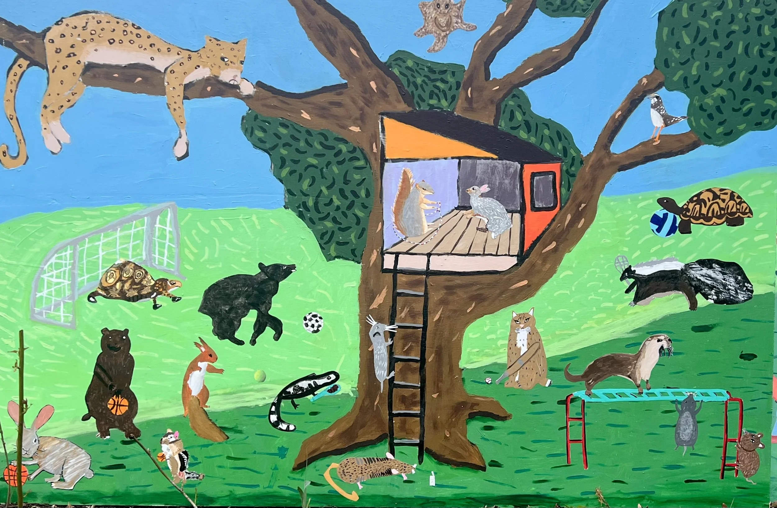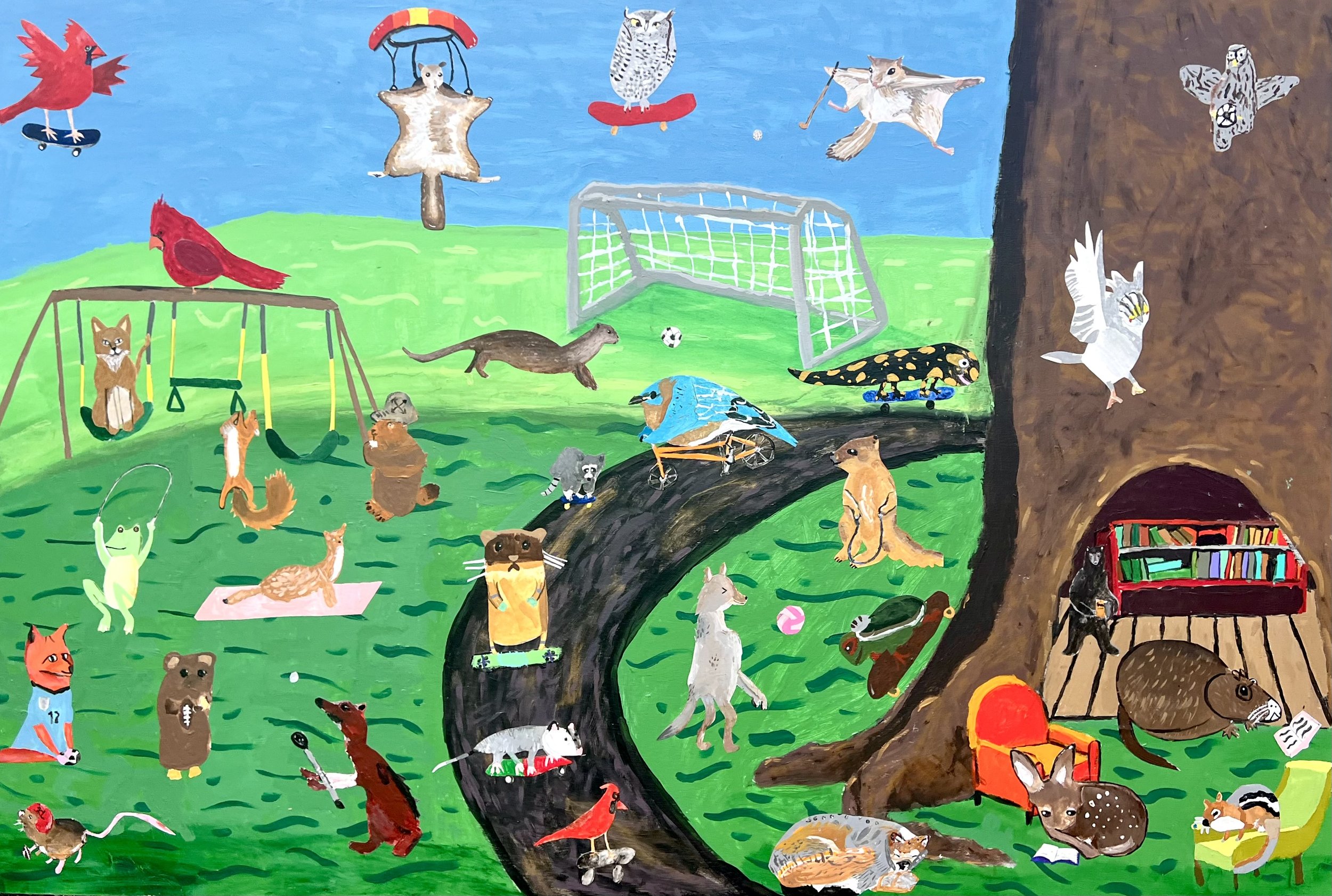 This mural will go in the gym at Lead mine elementary. We created it with the fifth graders. The theme is local animals (plus a leopard because it’s the school mascot) playing and being active- and also reading. This one was a lot of fun to make! Big thank you to the staff and volunteers at Lead Mine who made sure this project ran smoothly- especially the art teacher there - Holly Potts!