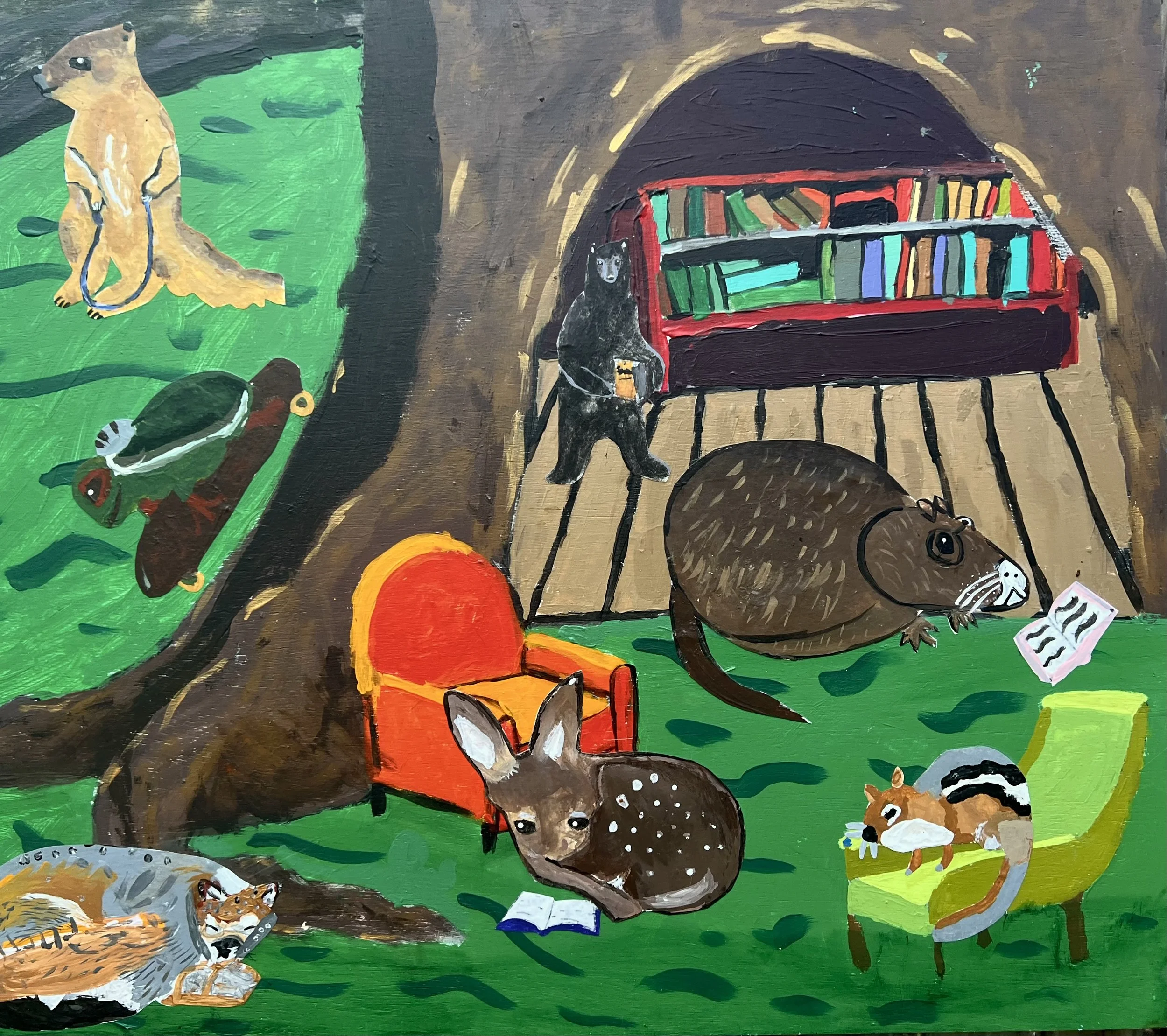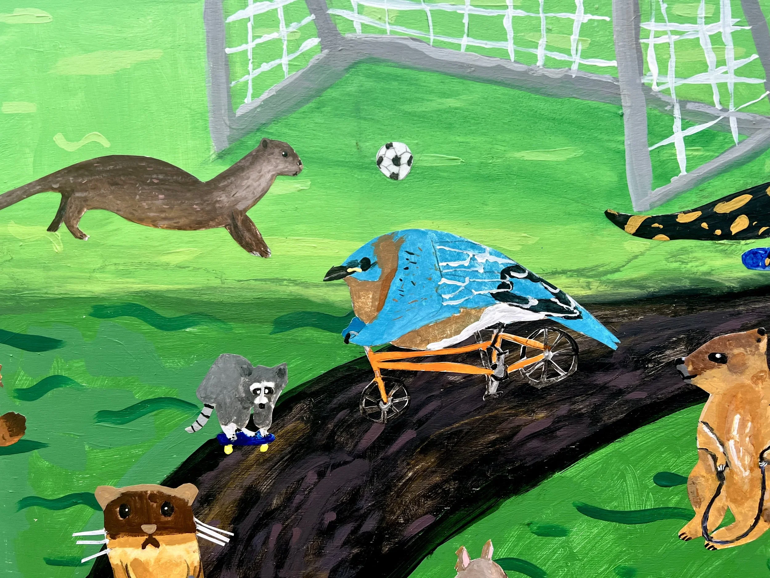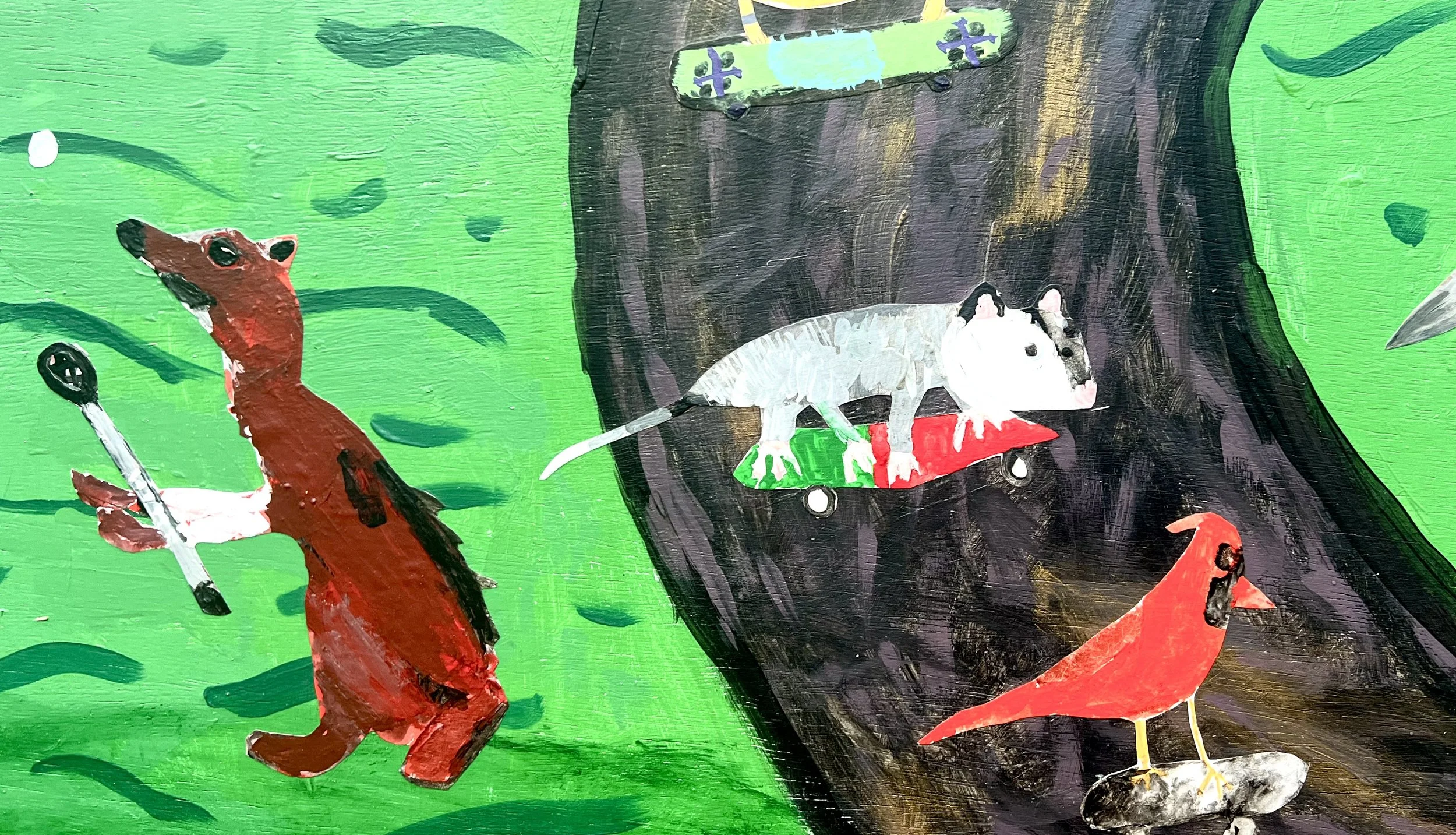 This mural will go in the gym at Lead mine elementary. We created it with the fifth graders. The theme is local animals (plus a leopard because it’s the school mascot) playing and being active- and also reading. This one was a lot of fun to make! Big thank you to the staff and volunteers at Lead Mine who made sure this project ran smoothly- especially the art teacher there - Holly Potts!